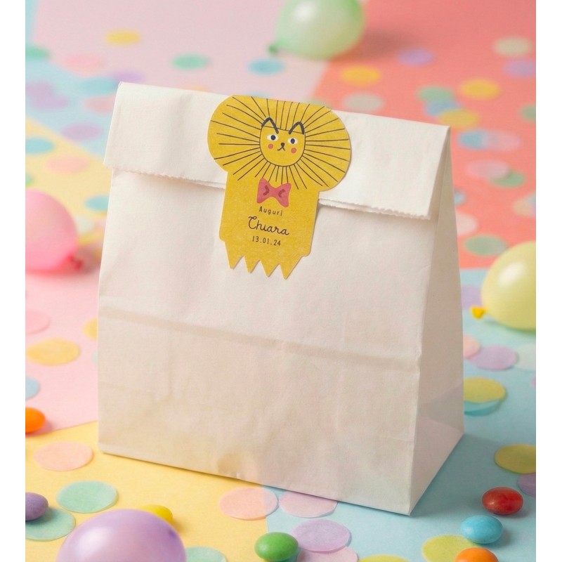 Tenera etichetta chiudi-busta a forma di leoncino.
