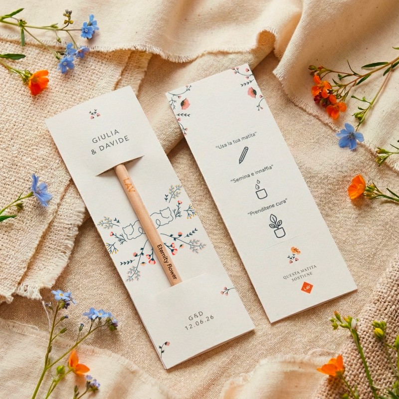 Una matita sostenibile e accompagnata da un elegante cartoncino personalizzabile, è il modo perfetto per ringraziare i tuoi invitati con un gesto che fa bene al cuore, alla natura e agli animali.